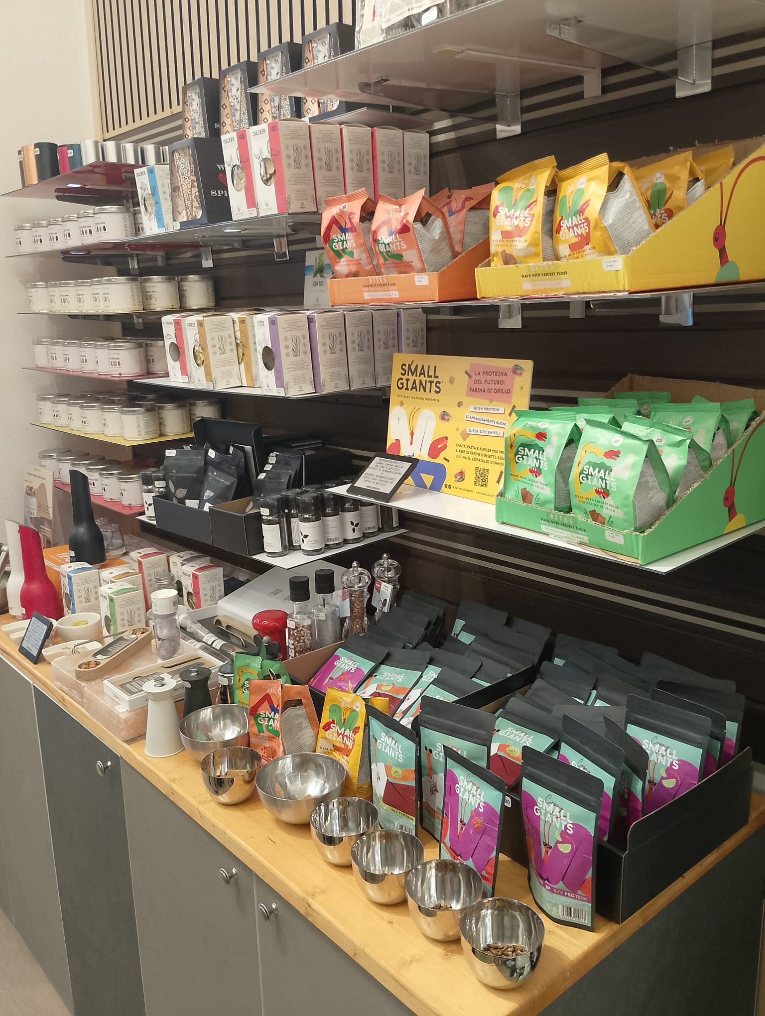 - Cibo confezionato selezionato dai produttori italiani più innovativi (paste, oli aromatizzati, creme, frutta secca, snack di alghe e di farina di insetti)