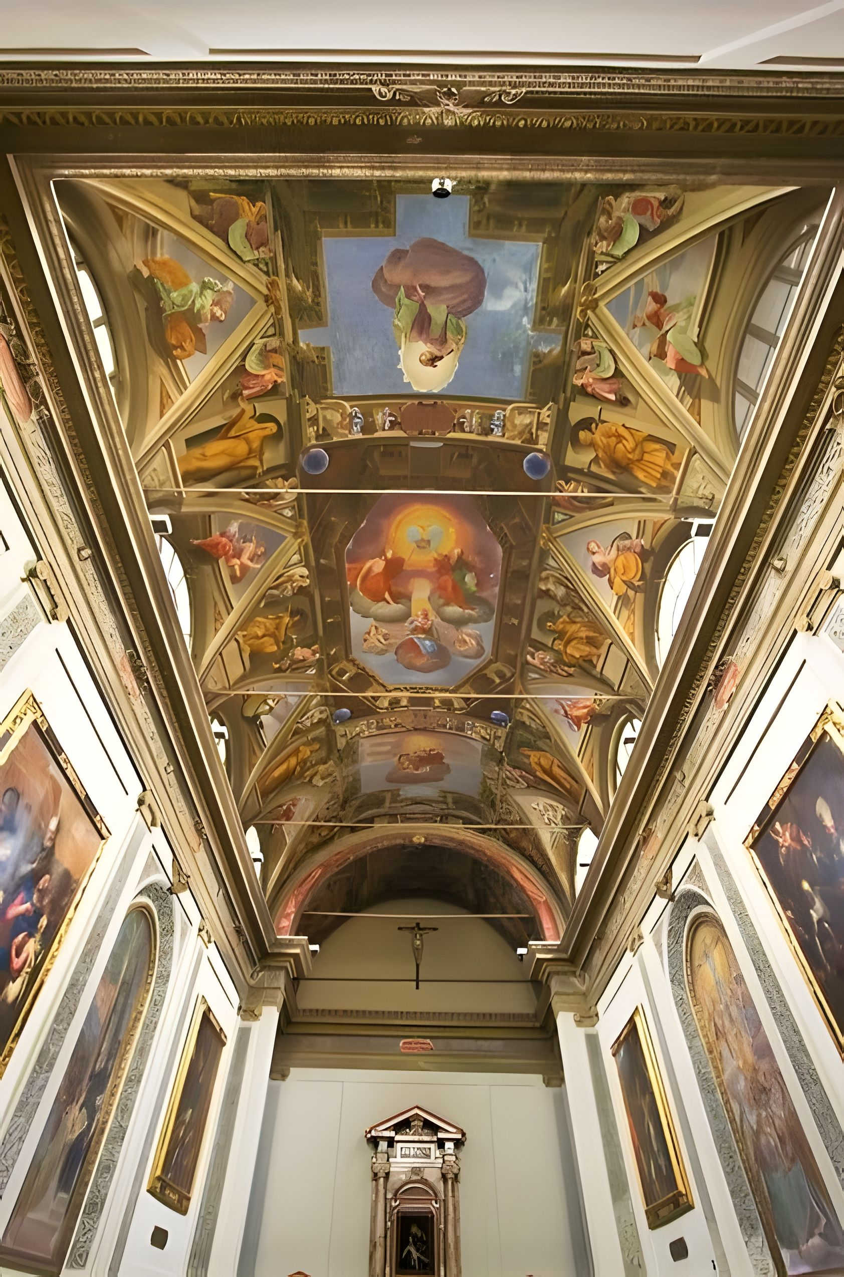Gli affreschi del lato di oriente l’annunzio a Gesù della morte di Lazzaro e lo zoppo risanato da san Pietro e san Giovanni, dovevano essere tra le più nobili opere di Bernardino, ma sono mirabilmente deperiti. Nel 1913 furono scoperti affreschi decorativi degli archi, dei sottarchi e delle pareti.